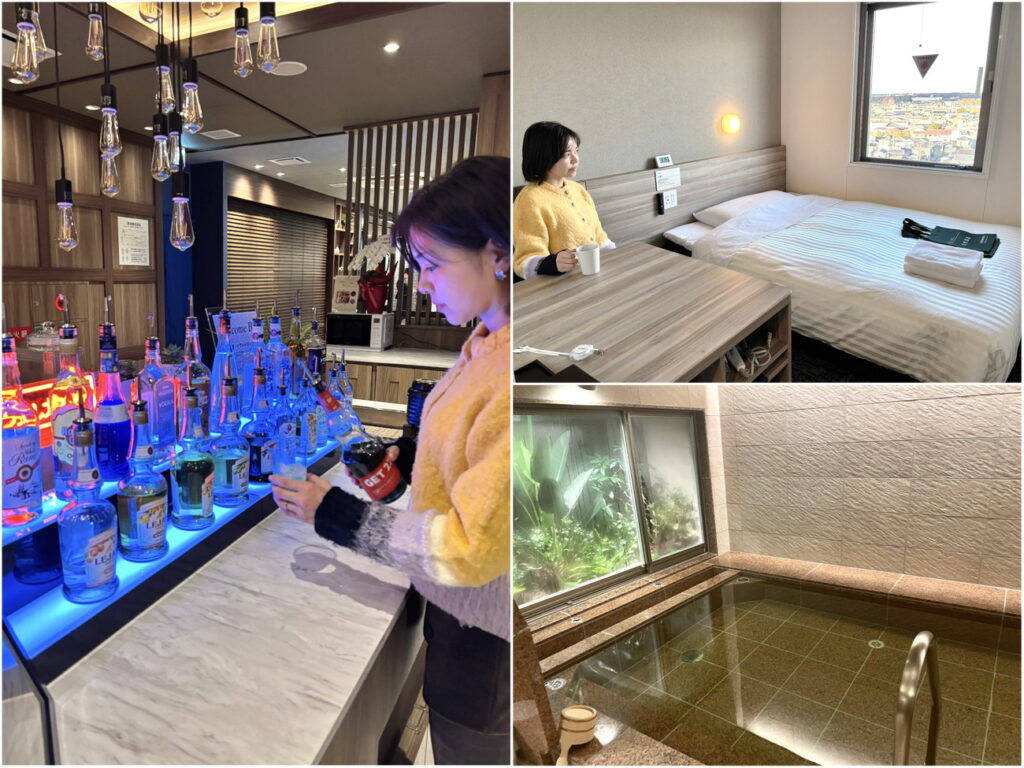 スーパーホテルは天然温泉の大浴場や朝食バイキング、ウェルカムバー、選べる枕、アメニティバーなどの無料サービスが嬉しい。