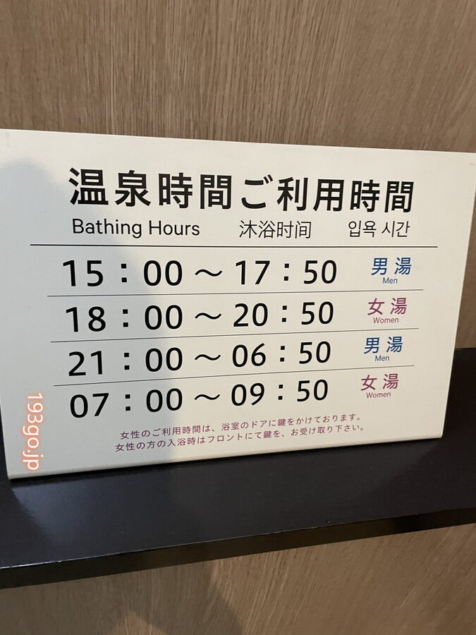 女性は18時~20時50分と朝7時~9時50分に利用でき、着いたらさっそく汗を流してサッパリ。
