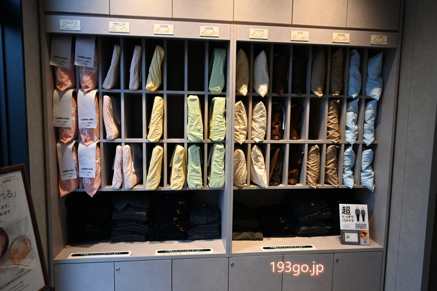 選べる枕と館内着、必要なアメニティをピックアップしてお部屋へ。