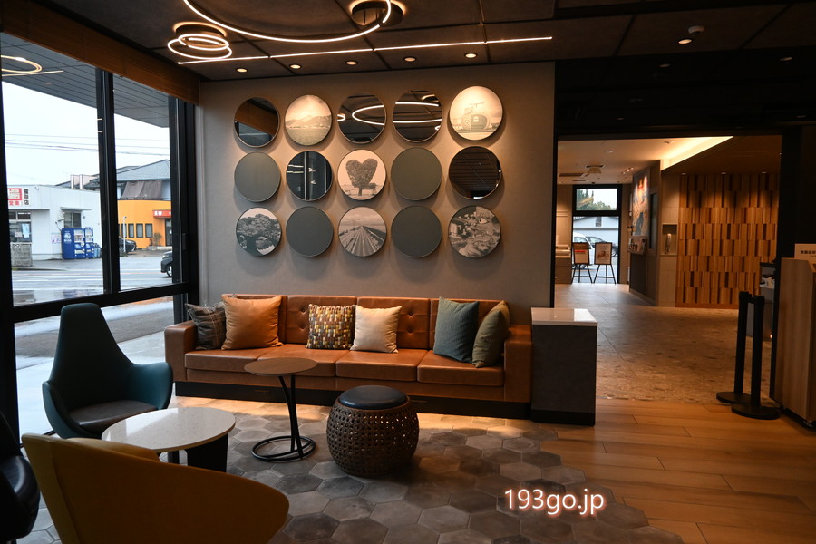 地域に関連したアート作品や、間接灯に包まれる落ち着いた内装。