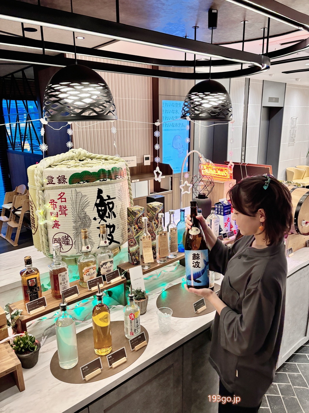 選りすぐりの地酒が並ぶ、ウェルカムバー