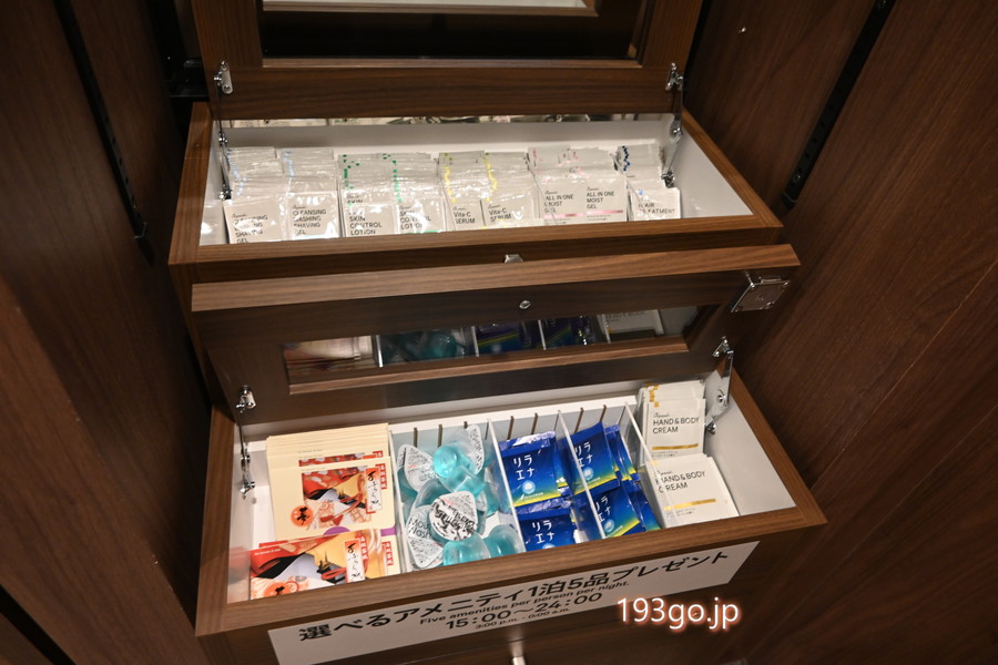 選べる枕・アメニティ・館内着をピックアップしてお部屋へ。