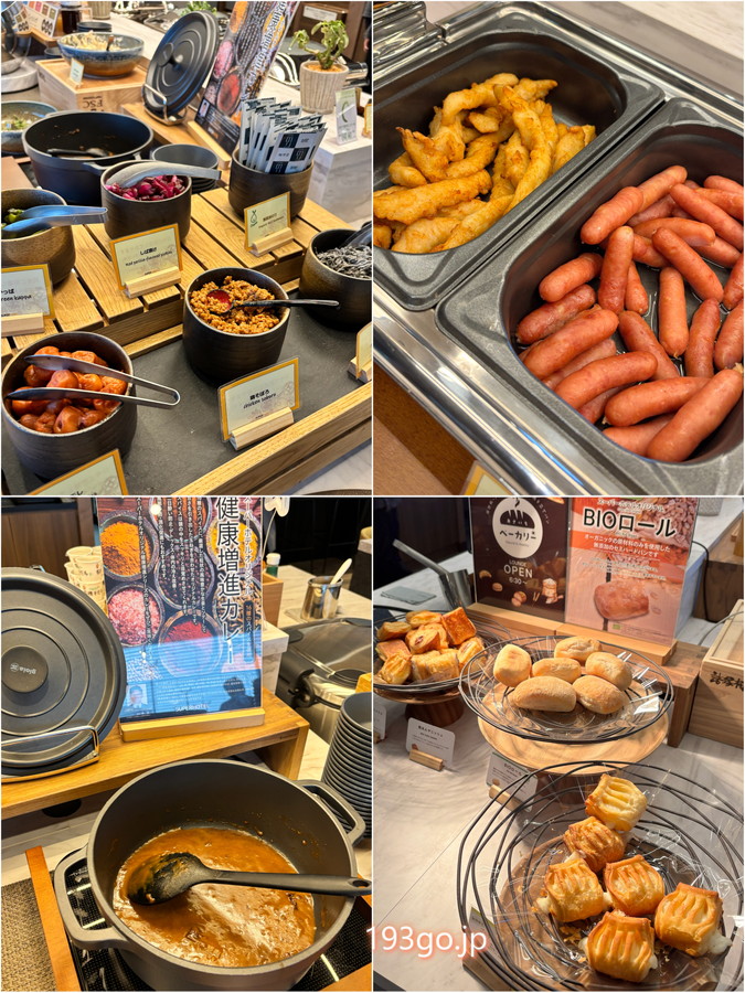 スーパーホテルでお馴染みのオーガニックサラダや焼きたてパン、健康増進カレーの他、