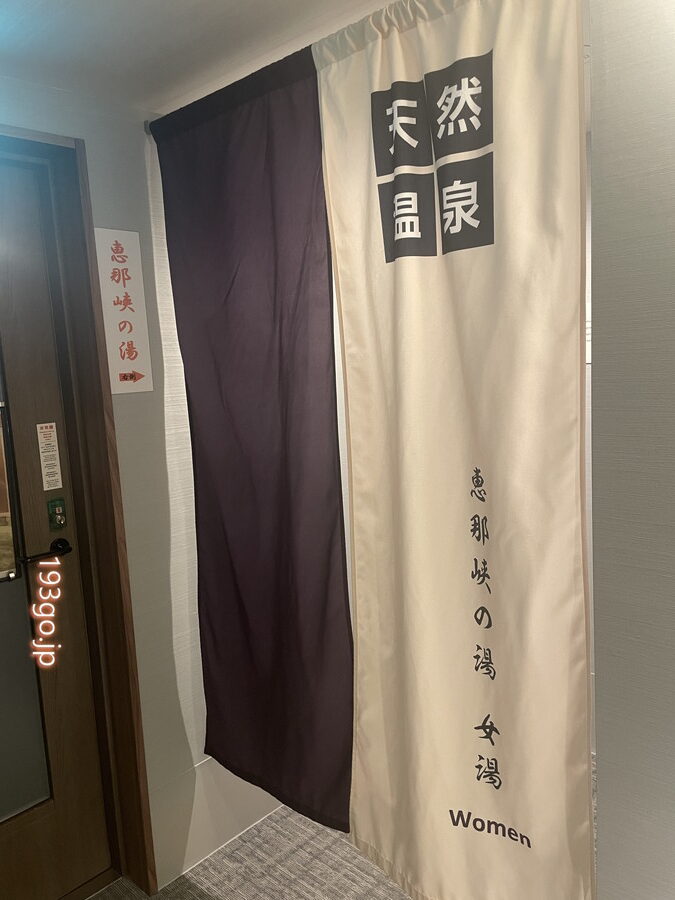 館内着とスリッパで2階の天然温泉「恵那峡の湯」へ。