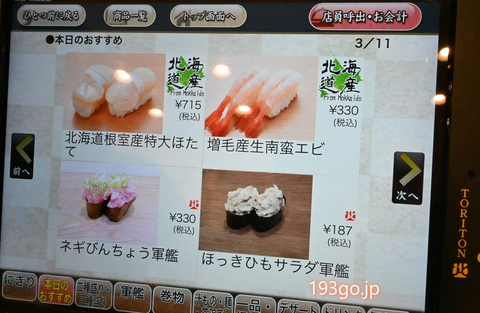 北海道の回転すし「トリトン旭神店」へ