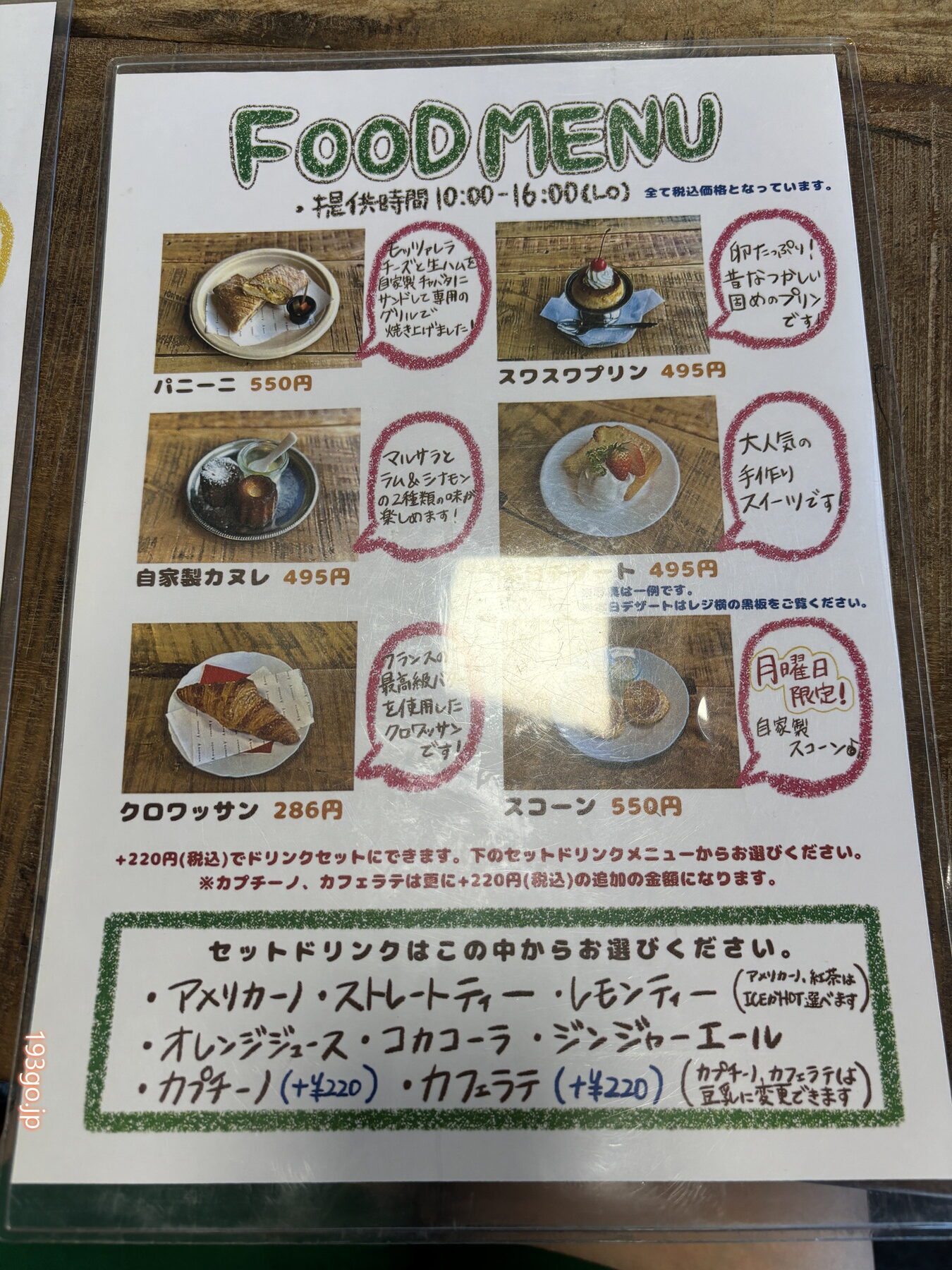 カフェメニュー(10:00~16:00)は、
