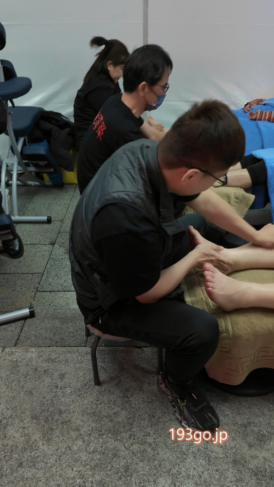 会場には本場からマッサージ師が来日!屋台グルメを堪能した後、足をほぐしてもらって大満足。
