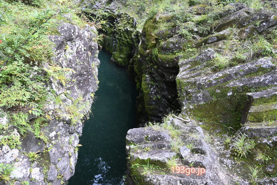 太古の昔、阿蘇山の火山活動によって噴出した火砕流が冷え固まり侵食された断崖がそそり立つ峡谷で、高いところで100m、 平均80mの断崖が東西に約7キロに渡って続き、