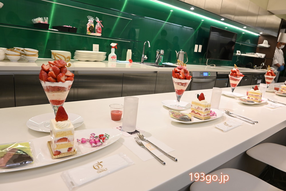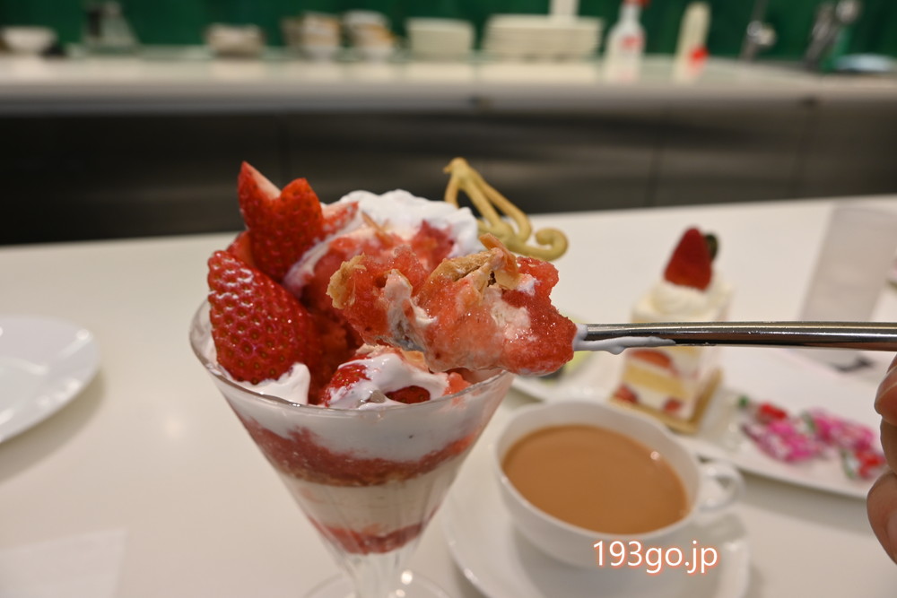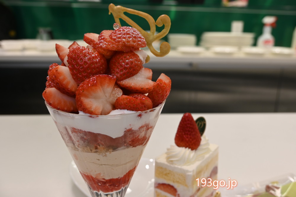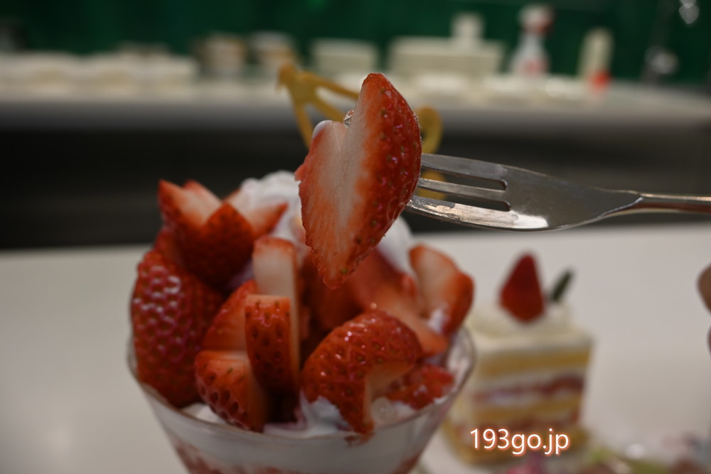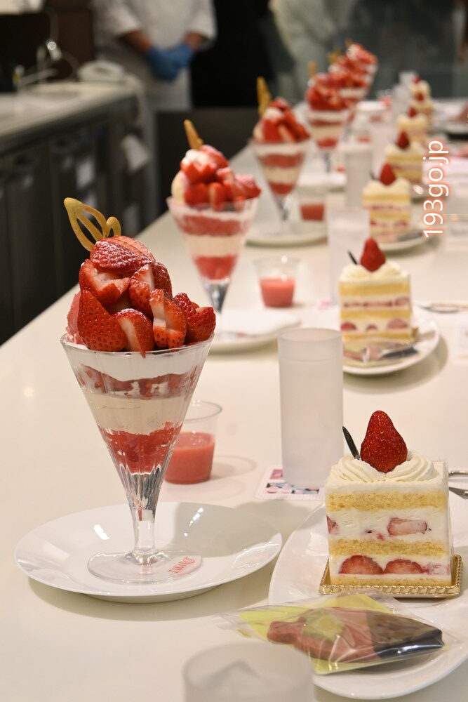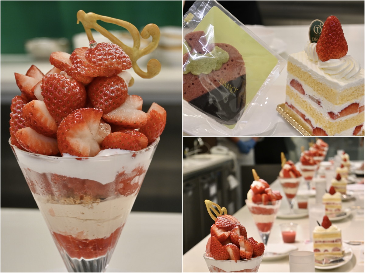 今回は、試食会に参加し、新メニューの苺のパフェやショートケーキ、