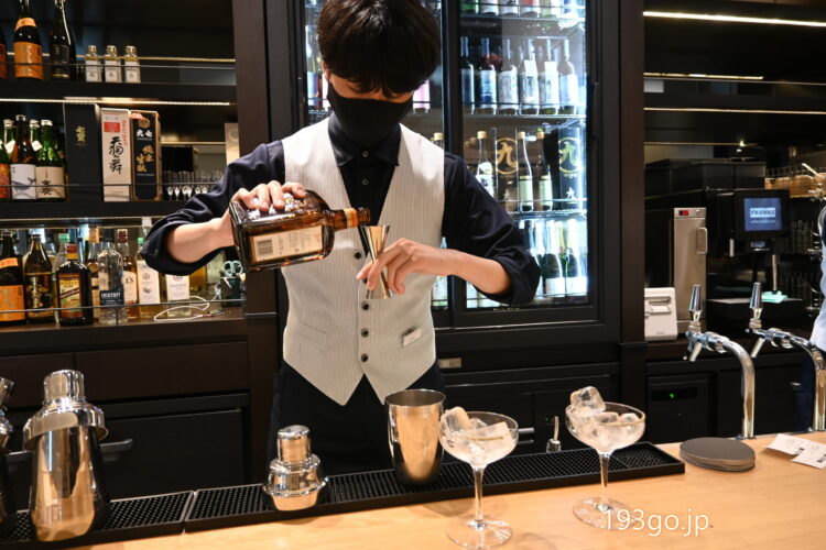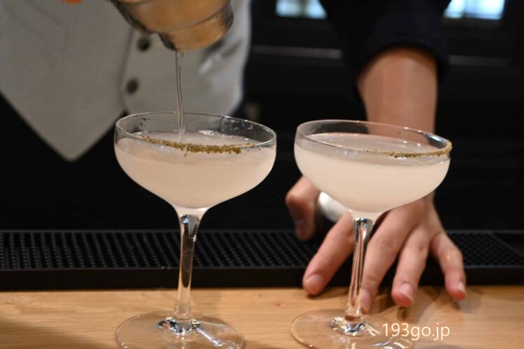 日本酒カクテルを作るシーンが目の前で見られるおしゃれなカウンターで、利き酒や、ランチに、スイーツが楽しめるのは良いね。