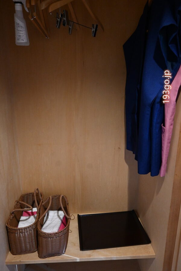 脱衣所にロッカー、洗面台、ドライヤー、スキンケア用品とバスアメニティが揃ってる。
