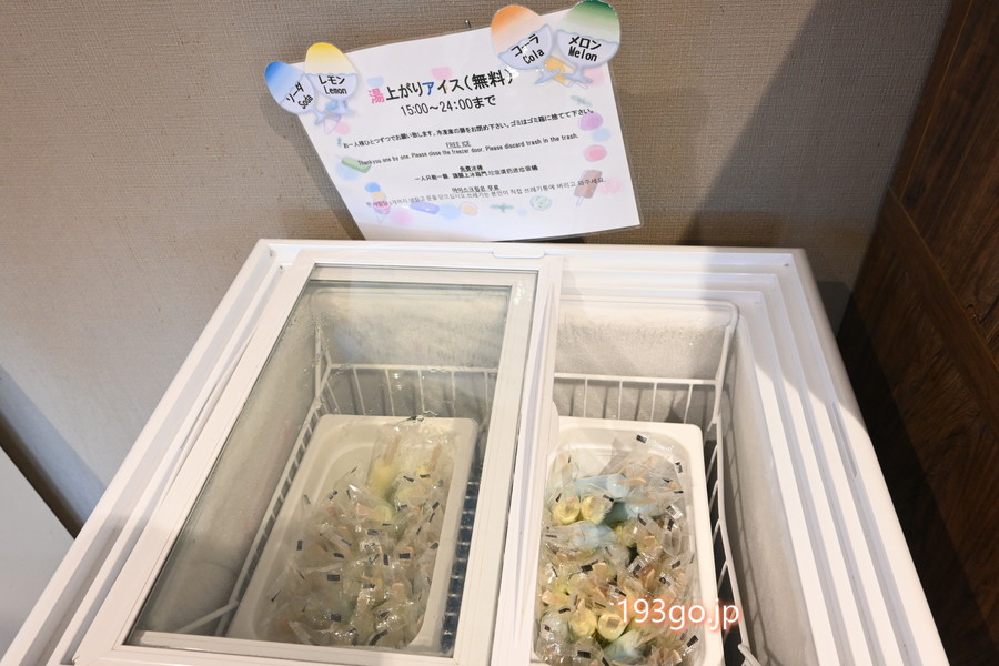 お風呂上りに、同じ1階のラウンジで湯上りアイス。