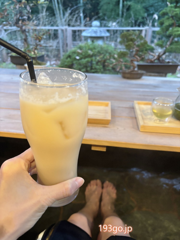 熱い足湯に浸かりながら冷たいものが美味しい。