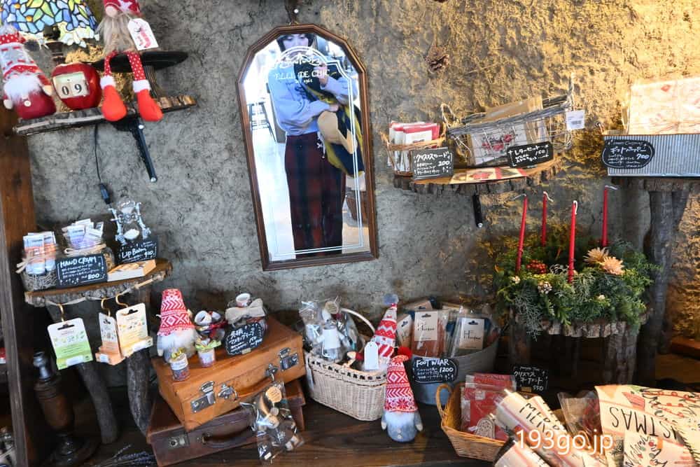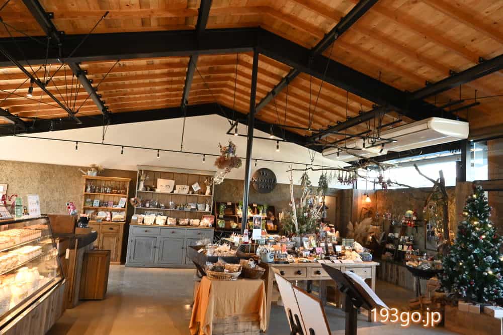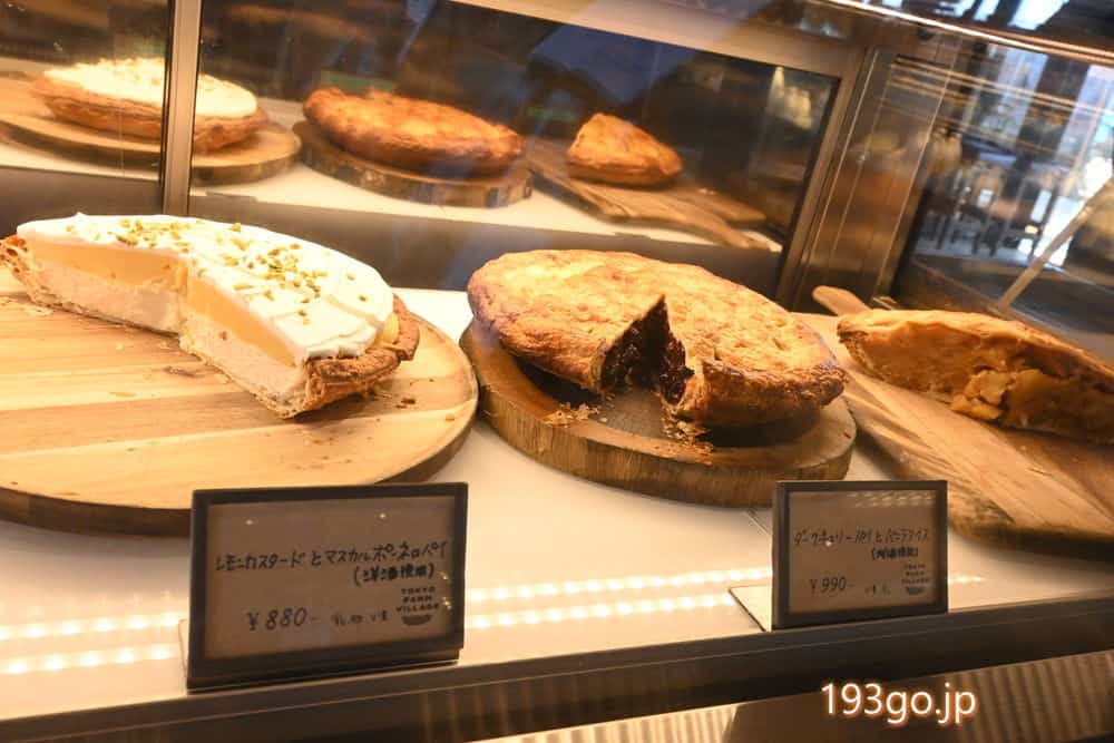 タルトやパイ、パン、ヨーグルト、プリン、雑貨・お土産、野菜も売られてる。