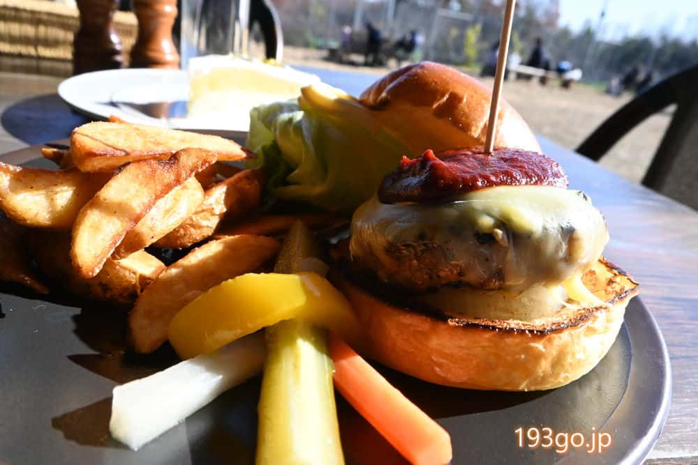 丘の上のテラスでハンバーガーランチ!レモンパイも