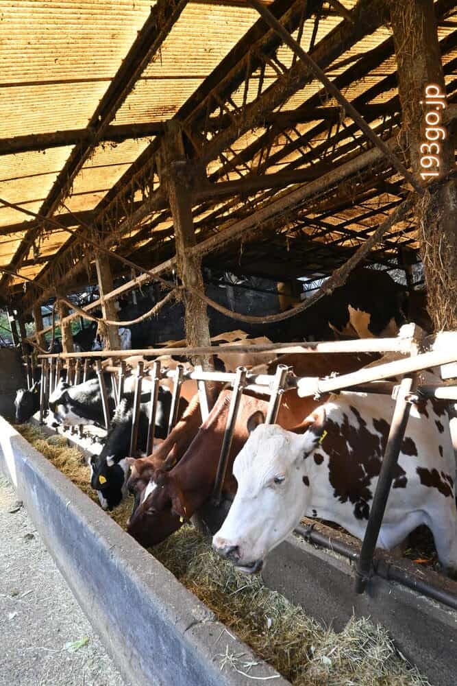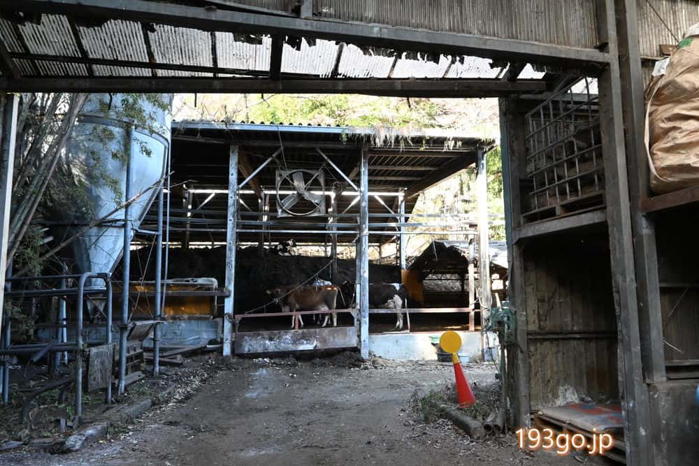 坂道の途中や、くだったところの牛舎に沢山の牛が!