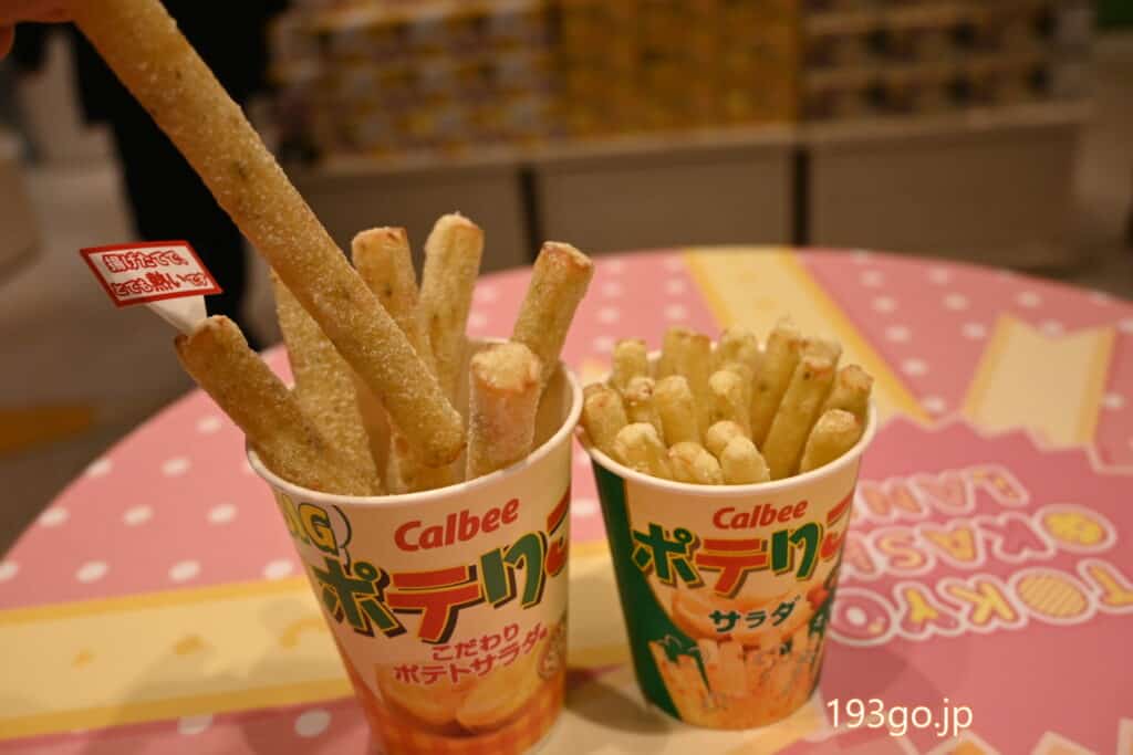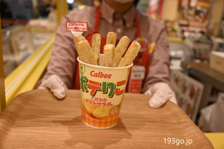 カルビーのアンテナショップ「カルビープラス」では、店内厨房で調理する人気商品「ポテりこ」が大きくなった「BIGポテりこ こだわりポテトサラダ味」:410円(税込)が新登場。