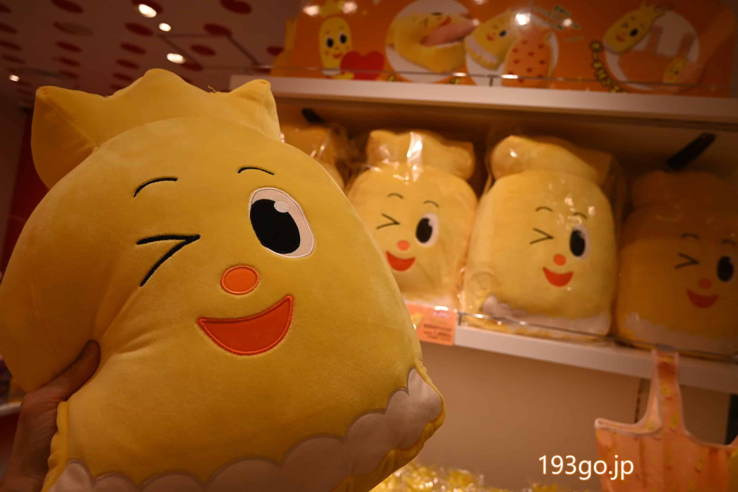 お菓子以外のオリジナルグッズも!ターン王子のモコモコクッションは手に持つと、家に持って帰りたくなる愛くるしさ。
