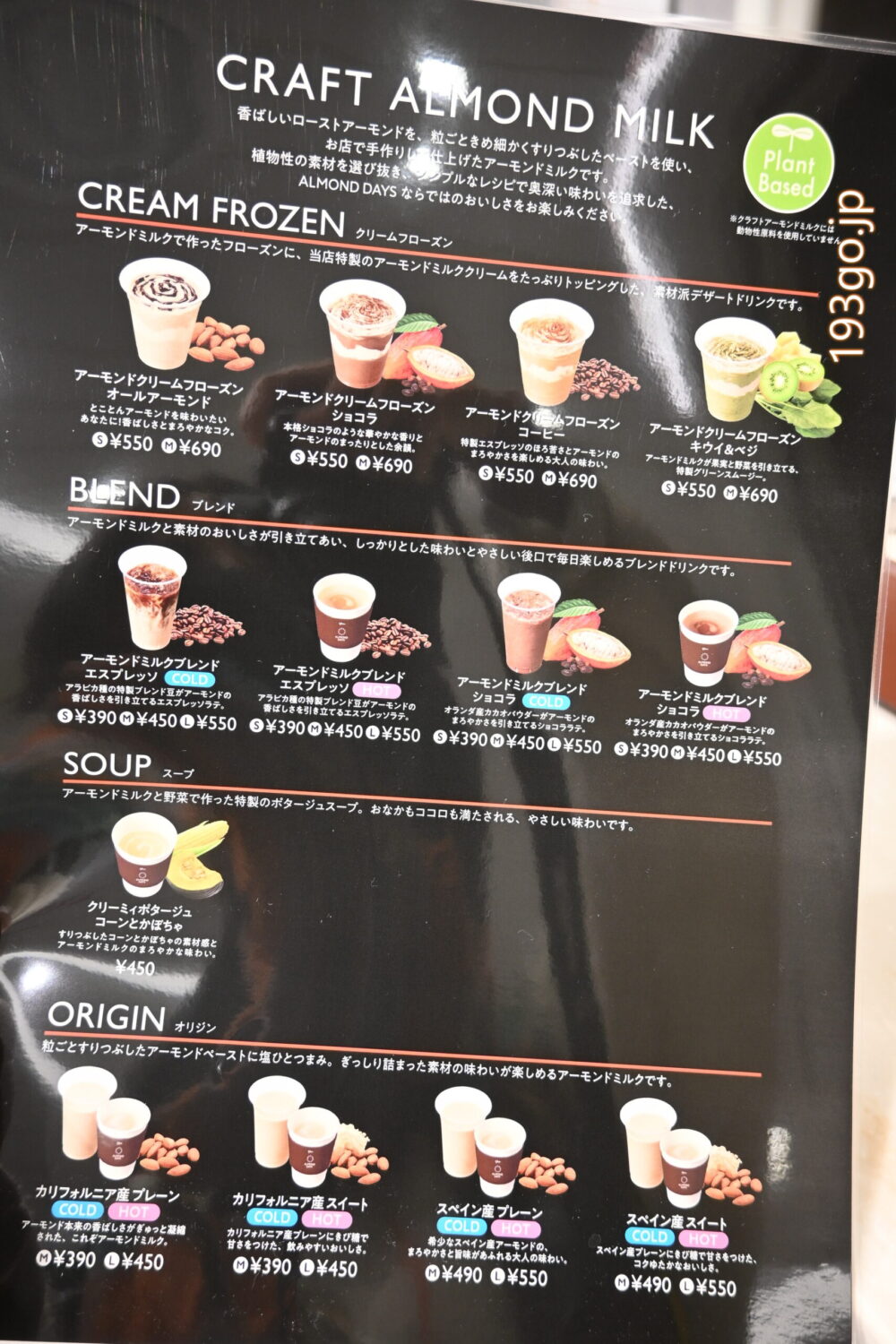 クラフトアーモンドミルク オリジン(カリフォルニア産):Mサイズ:390円、Lサイズ:450円(税込)