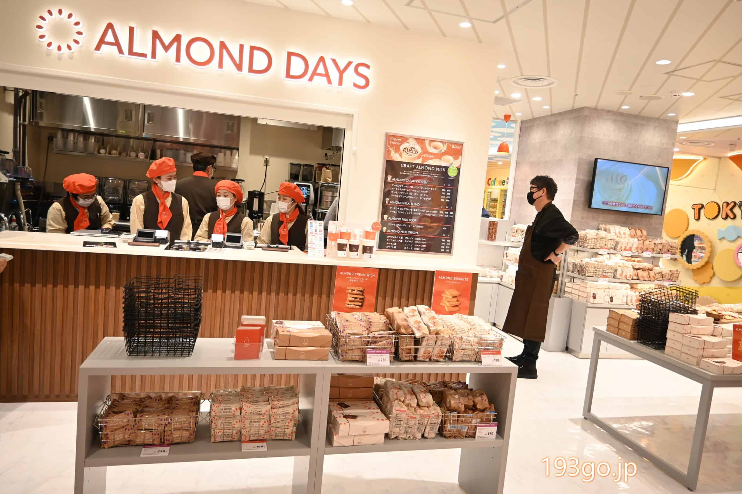 香ばしいローストアーモンドを粒ごときめ細かくすりつぶしたペーストを使って手作りで仕上げたアーモンドミルクを骨格とした全9種のドリンクを始め、アーモンドビスキュイ:20枚2,200円、アーモンドクリームウィッチ:8枚2,200円、フライドアーモンドや素焼きアーモンド、アーモンドグラッセなど店舗限定商品も。