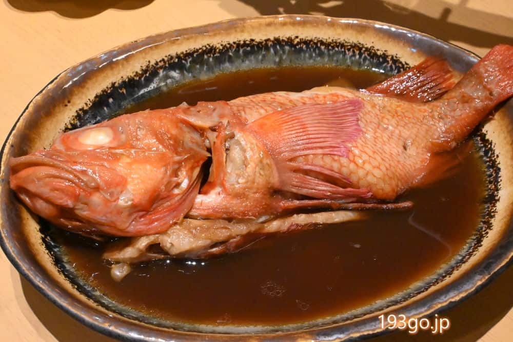 脂の乗りがよく、柔らかな肉質のきんきを1尾丸ごと提供する「きんきの煮付け」は、秘伝のタレで甘めに煮付けたお酒が進む逸品。
