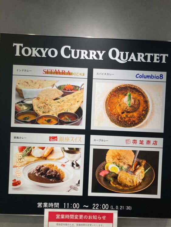 東京駅の八重洲地下街(通称:ヤエチカ)の一角に2022年2月2日にオープンした「TOKYO CURRY QUARTET」(トウキョウ カレー カルテット)。