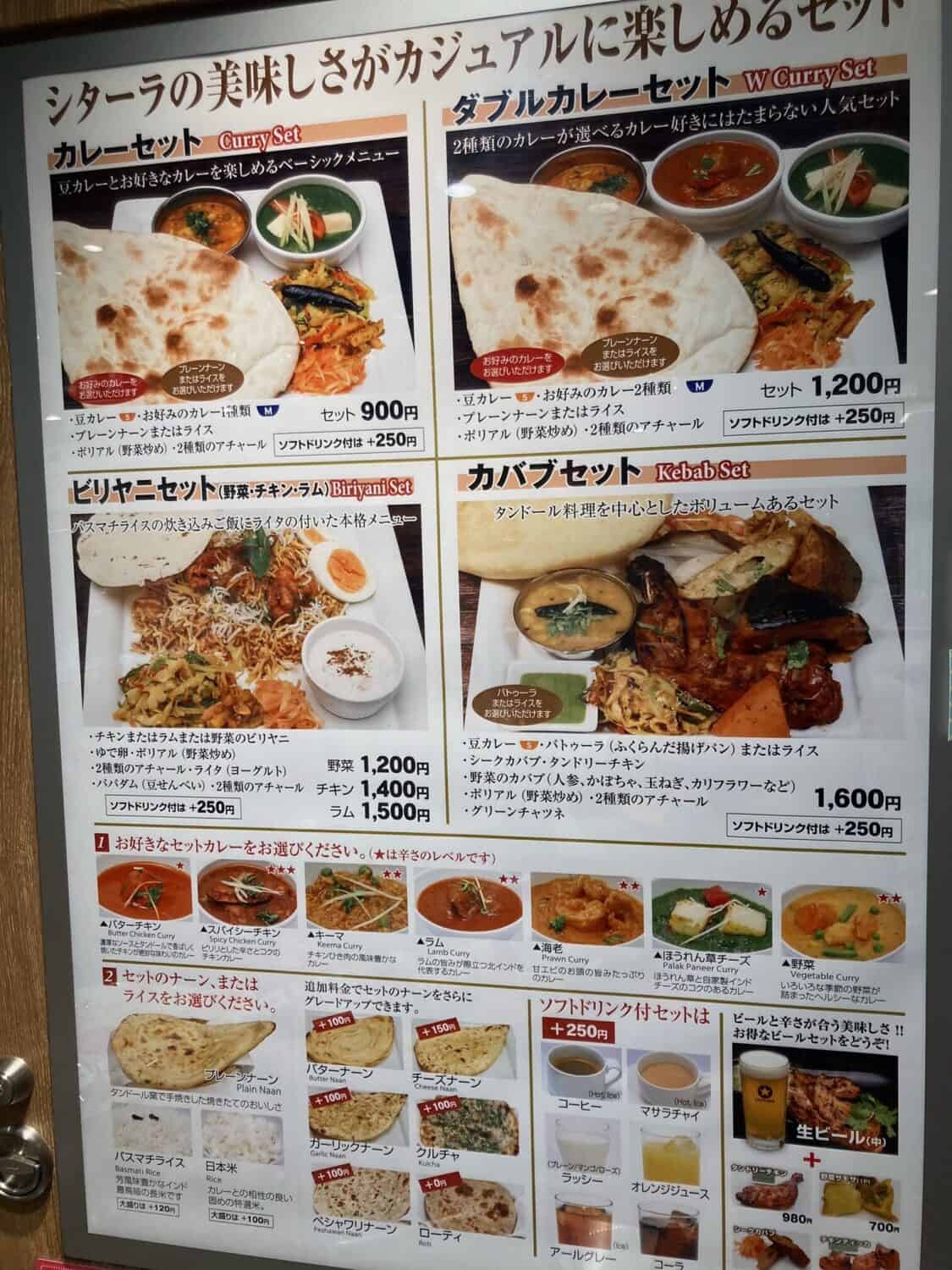 ナンと選べるカレーにポリアル、アチャールが付いたカレーセット:900円~や、ビリヤニセット、タンドール料理メインのカバブセットなどが揃い美味しそう…!