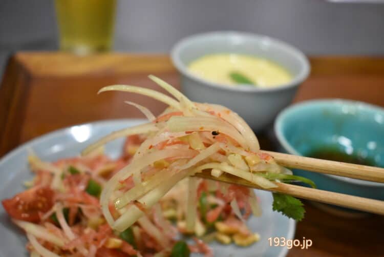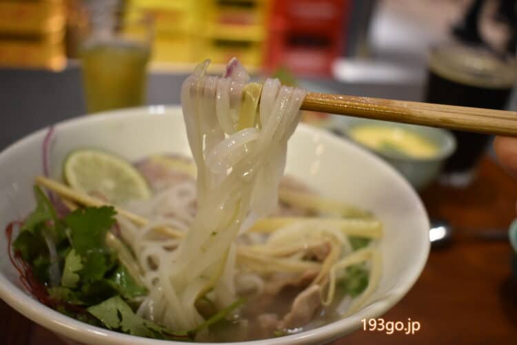 牛スープにレモングラスの爽やかな香りとナンプラーのさっぱりした味わい。麺は程よいコシとなめらかな食感でスルスルっと入る。