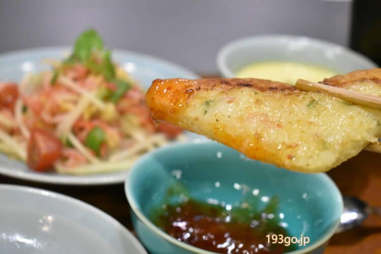 海老トーストはサクサク食感とスイートチリソースのコンビネーションでヤミツキのおつまみ。