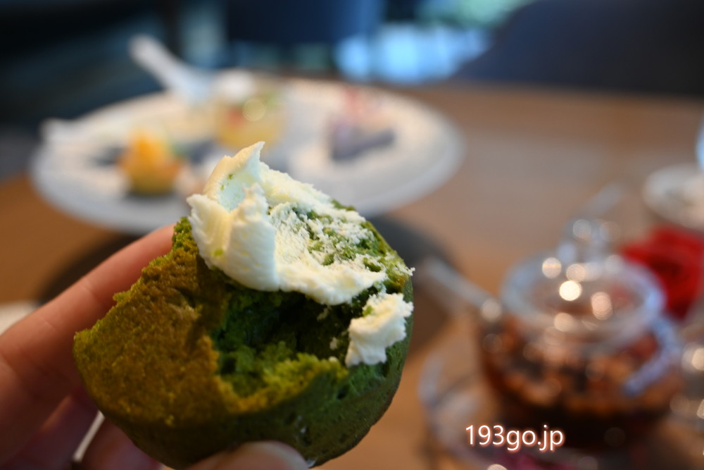 自家製スコーンはプレーンと抹茶の2種。柔らかくホワホワした生地にクロテッドクリームとアプリコットジャムを乗せ。