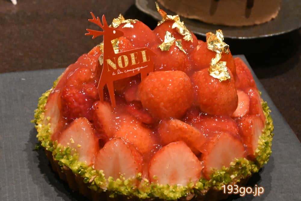 ア・ラ・カンパーニュのオリジナルタルト生地に、アーモンドクリーム・カスタードクリーム・いちごを組み合わせたクリスマスタルト。
