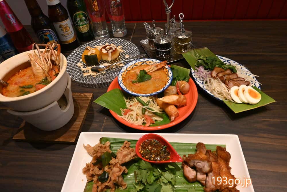 甘酸っぱくて辛さの効いたコリコリ食感のソムタム(パパイヤサラダ)、タイの手長海老を使用した濃厚なトムヤムクンはヤミツキに。