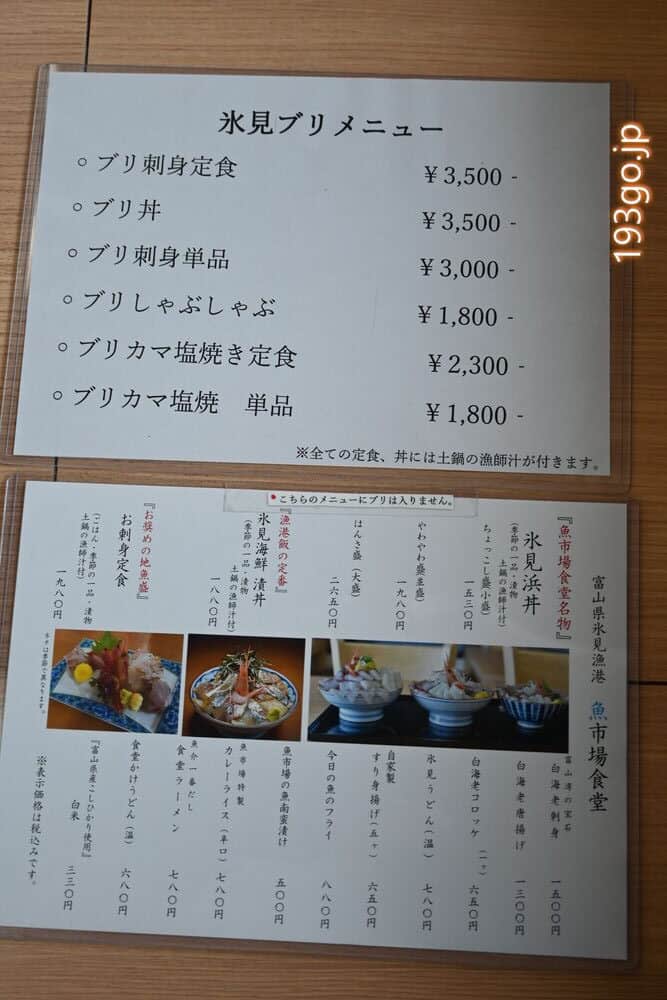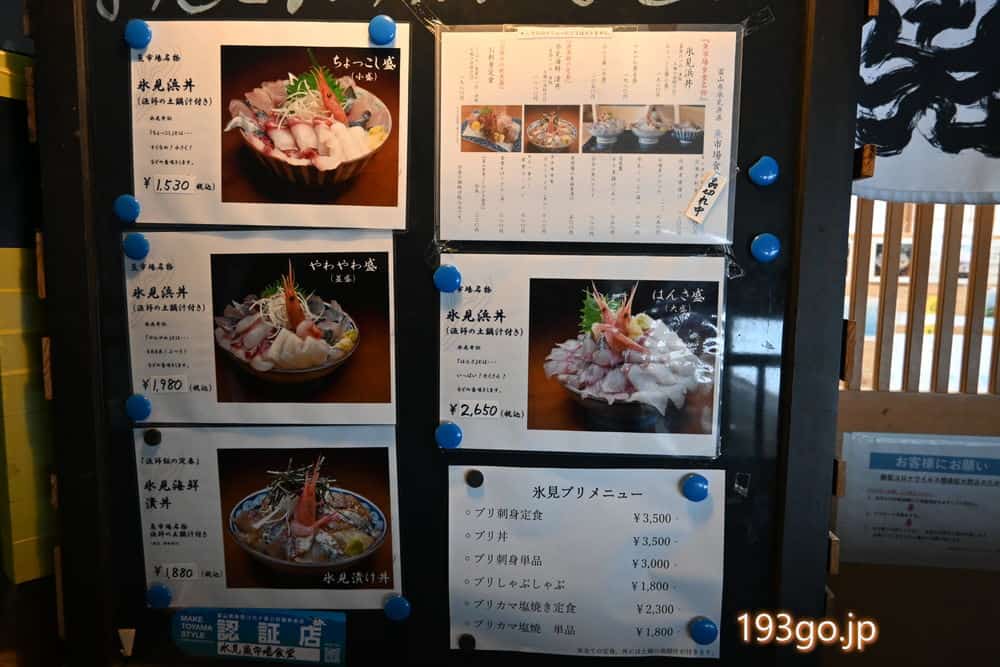 メニューは名物・氷見浜丼に、漁港飯の定番・漬丼、旬のブリ料理も