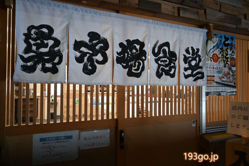 氷見魚市場に到着。独特な文字で書かれた「のれん」がかかった扉から中へ。