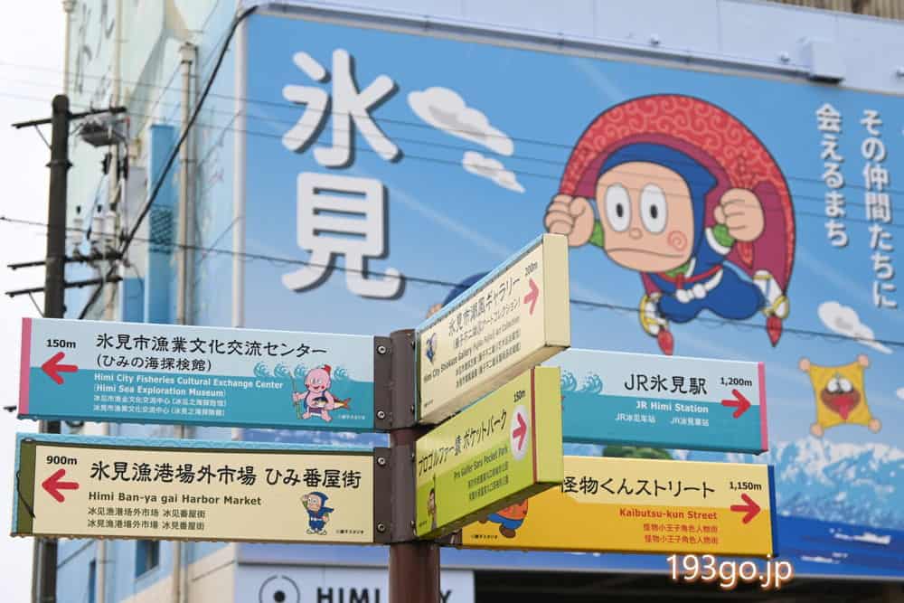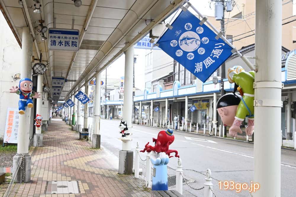 その後は氷見市出身のマンガ家・藤子 不二雄Ⓐさんのキャラクターたちが出迎えてくれる「まんがロード」を見て周り、氷見駅へ。