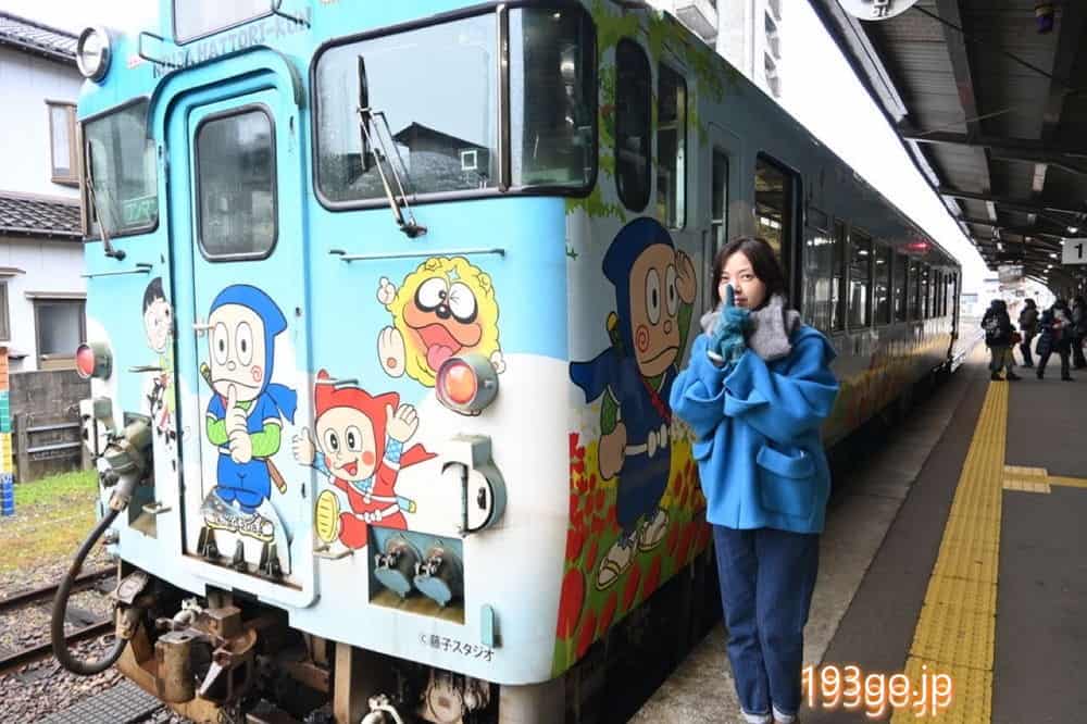 藤子 不二雄Ⓐさんの生まれ町氷見の「まんがロード」歩き、「忍者ハットリくん列車」に乗って