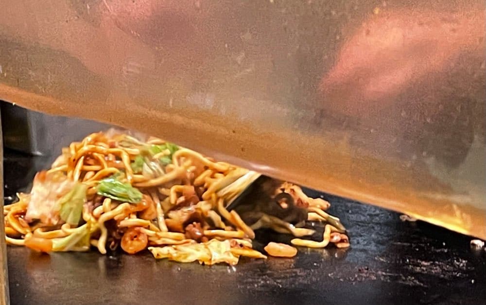 お好み焼きと焼きそばを注文し、それぞれを半分ずつ分けてハーフ&ハーフなるものを楽しんでた。