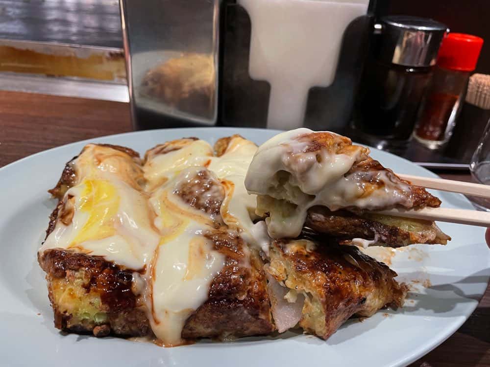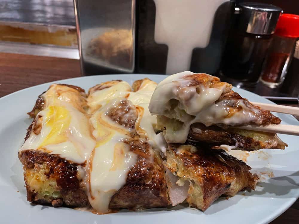 四角いお好み焼き たっぷりマヨネーズに驚き