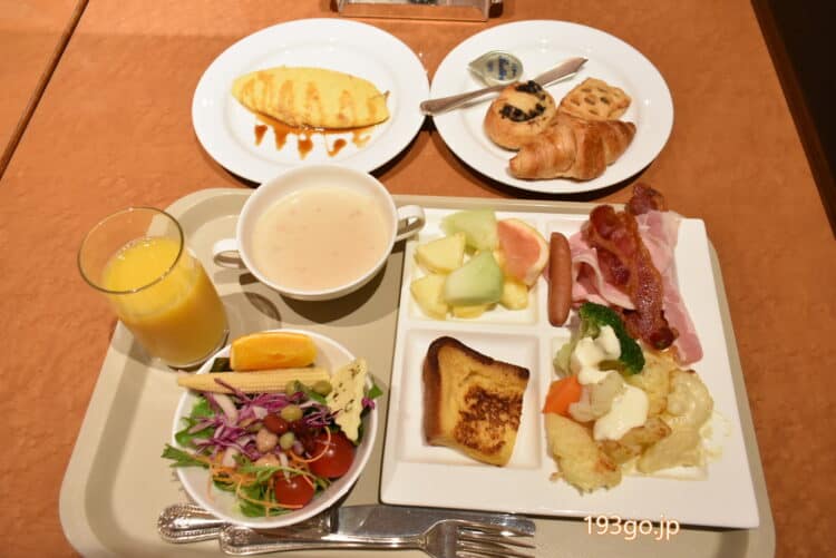 コロナ過では、ビュッフェスタイルではなくプレートセットなどで提供する宿泊施設も多かったけど、ホテルの朝食のビュッフェはやっぱりテンションが上がる。朝からこれだけの品数で、何度もピックアップに行ったりとワクワクしながら食べられるのもホテルステイの醍醐味だ。