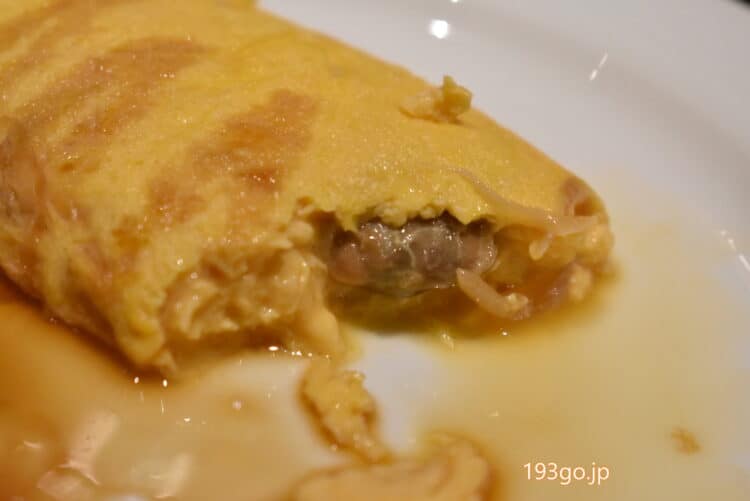 オムレツにもイーストオリジナルの「深川オムレツ」があり、注文。アサリ入りだ。出汁と半熟の卵とで親子丼を食べてるような味わいの和風オムレツ。
