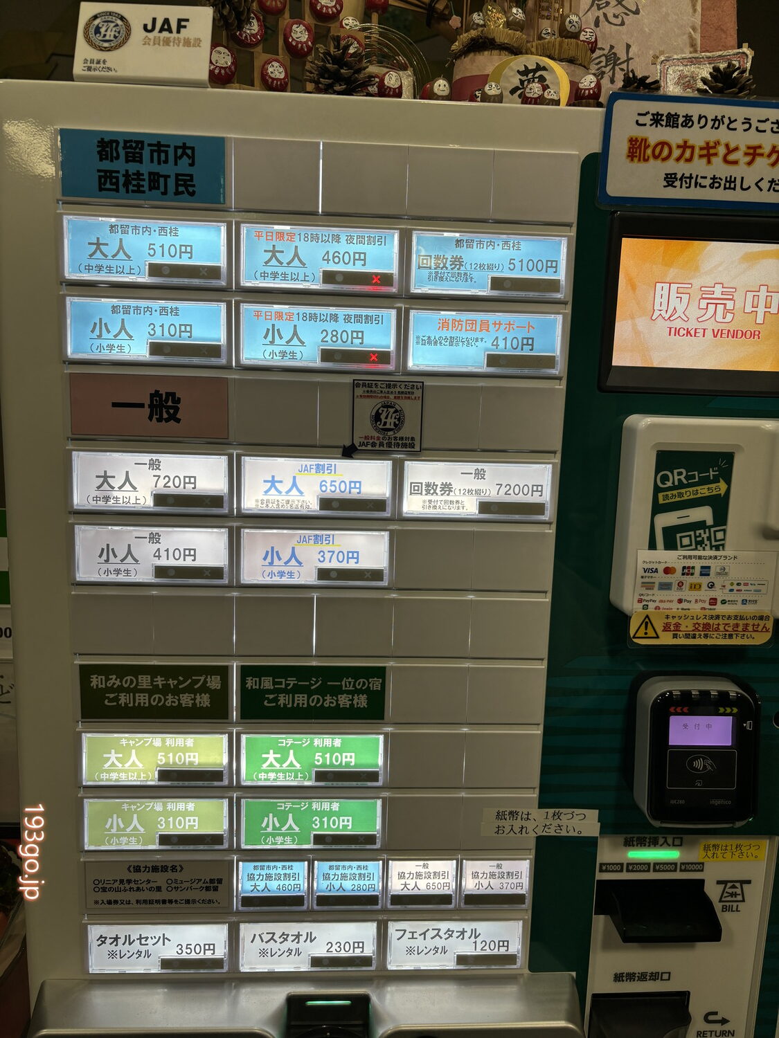 都留市内・西桂の人は510円(小学生以下310円)/平日460円(小学生以下280円)
