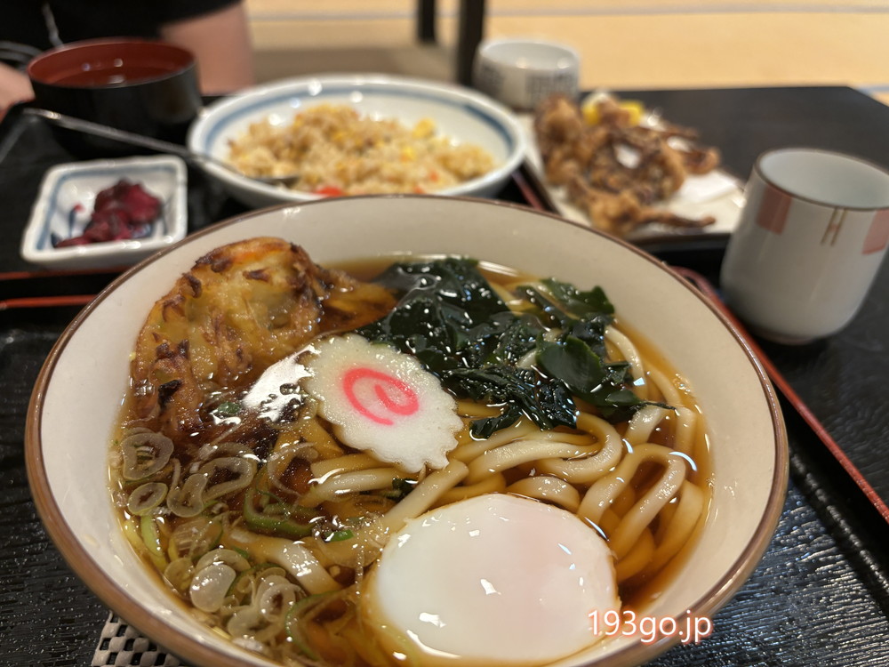 この中ではうどんが一番おいしかったな。かき揚げに温玉、ワカメにナルト!
