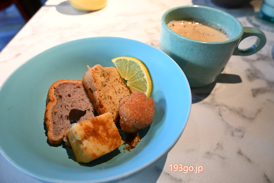 自家製のシフォンケーキは紅芋とさんぴん茶の2フレーバー。
