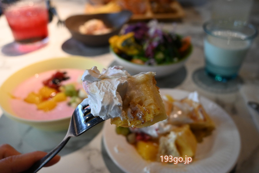 焼きたてのフレンチトーストにはクリームをたっぷりと乗せて。
