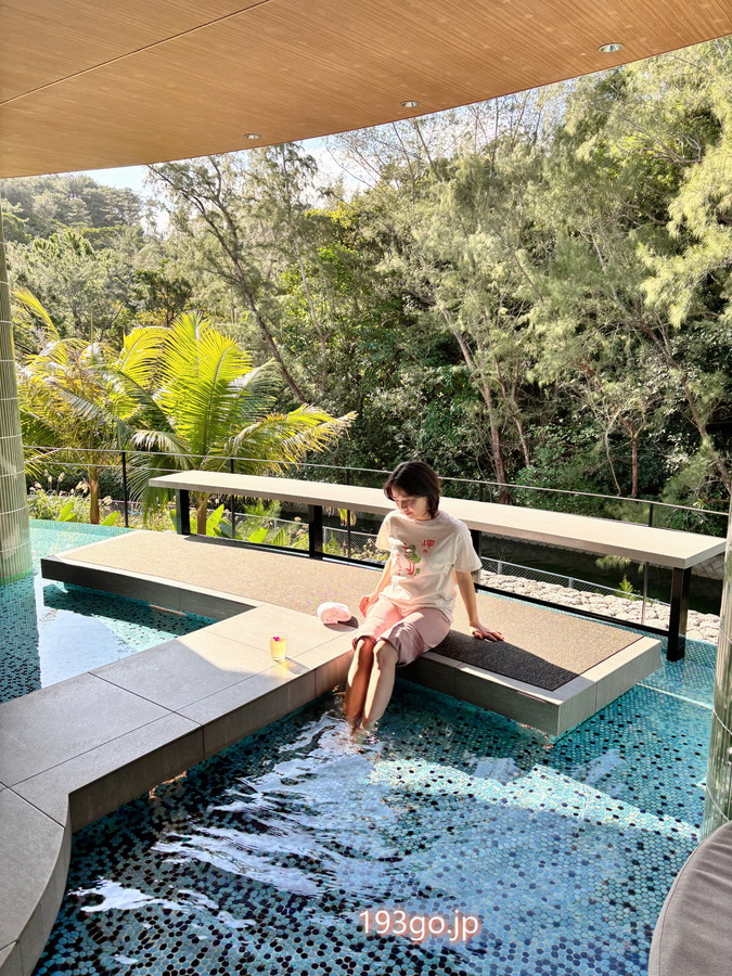 ドリンクを飲みながら、ガゼボでくつろいだり、足元はひんやりした水に浸かって過ごせる。