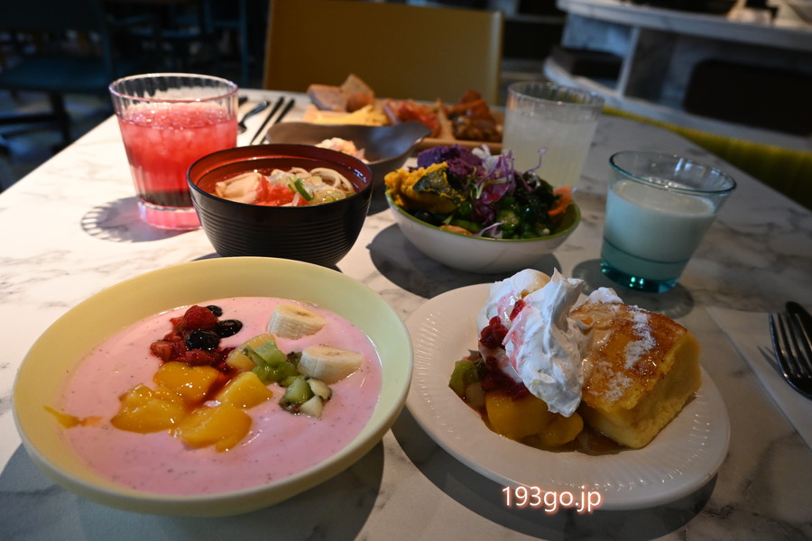 朝食は沖縄名物満載のブッフェ!焼きたてフレンチトーストとトロピカルヨーグルトも