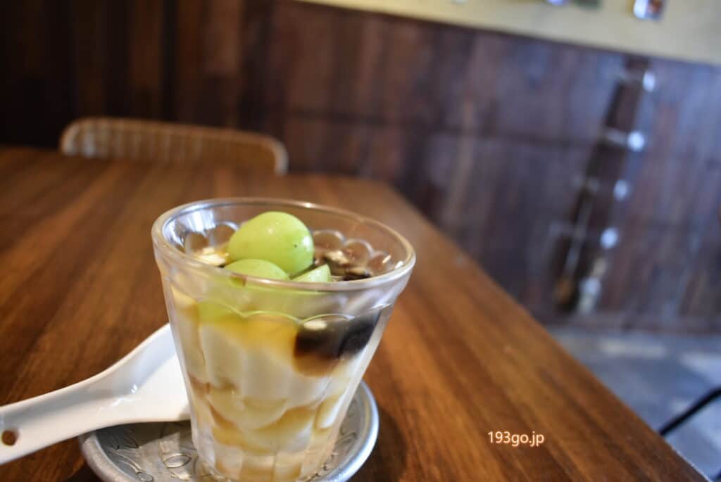 仙草ゼリーやブラックタピオカと、マスカット入りでツルンもち食感を堪能。