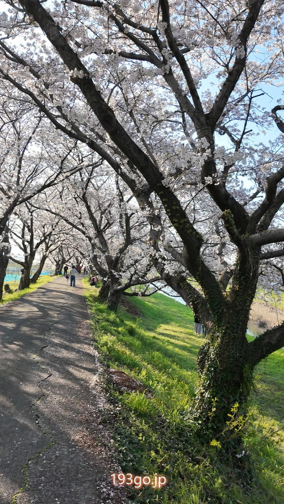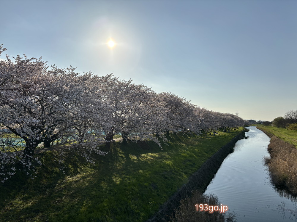 巨瀬川(こせがわ)沿いに約2kmにわたる約350本の桜並木。