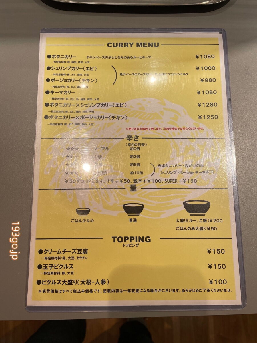 インスタグラムhttps://www.instagram.com/botani_curry.umeda/