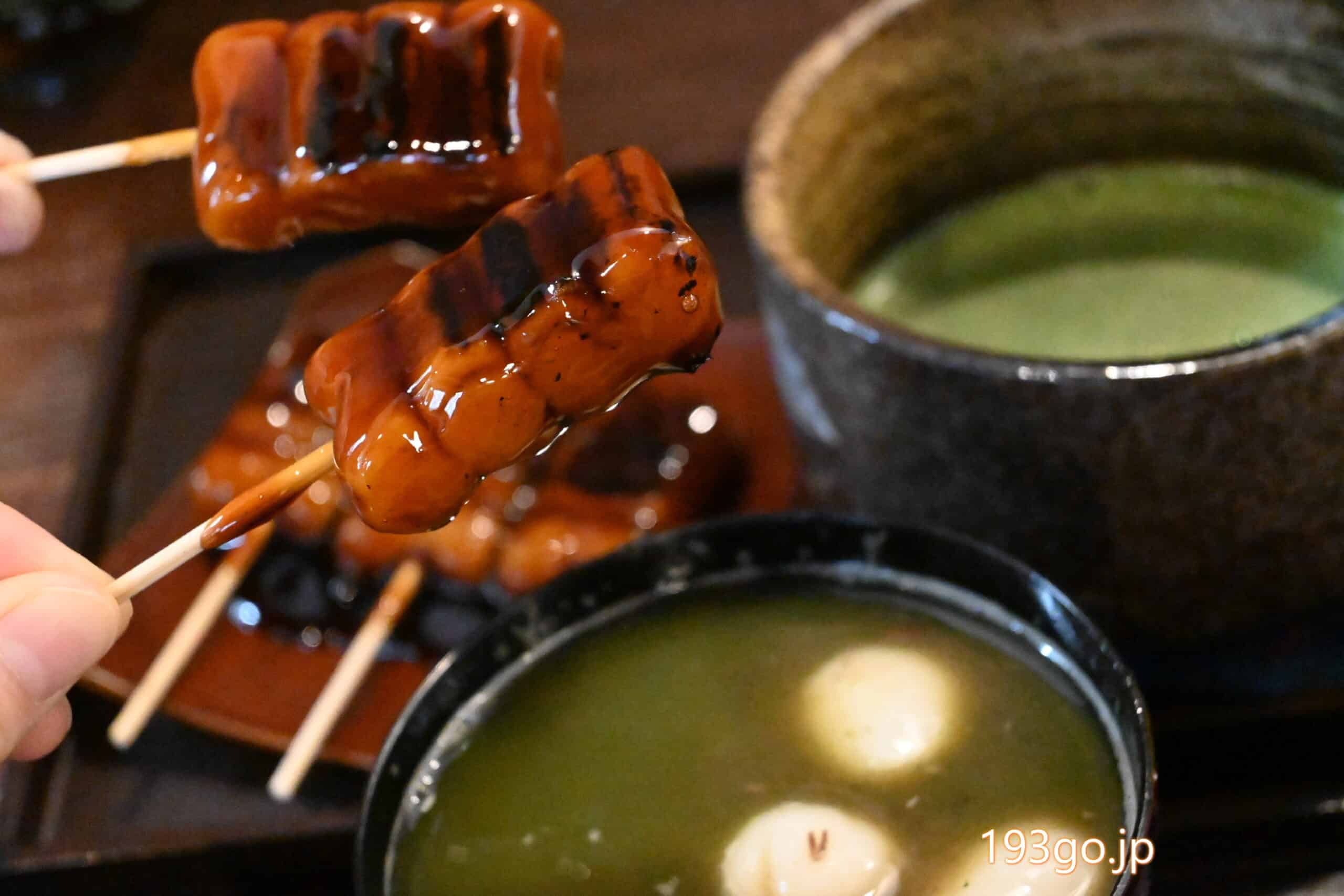 タレたっぷりの温かいみたらし団子 お抹茶セット